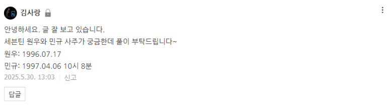 손님의 요청으로 세븐틴의 민규님 사주를 보도록 하겠습니다~^^