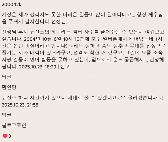 이번에는 손님이 요청한 뉴진스 하니의 사주를 보도록 하겠습니다.